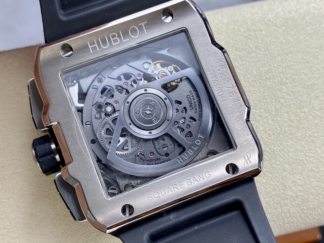 - Movement : Hublot Swiss HUB1280 Automatic Exact 1:1 Super Clone Movement Each and Every Parts of Machine Inside is Same Like Genuine Watch With Accurate HUB1280 Movement Number Along With Other Brand Engrave on it Which is Clearly Visible From Back Transparent Crystal