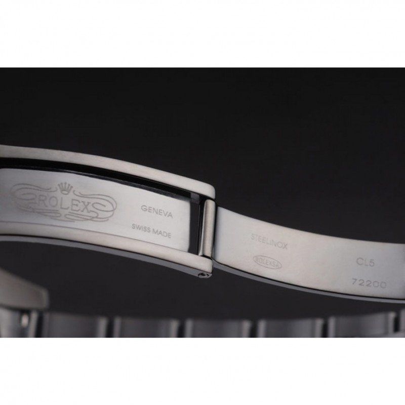BraceletIon-plated stainless steel link bracelet with Rolex engraved fold-in deployment clasp displaying the Rolex logo