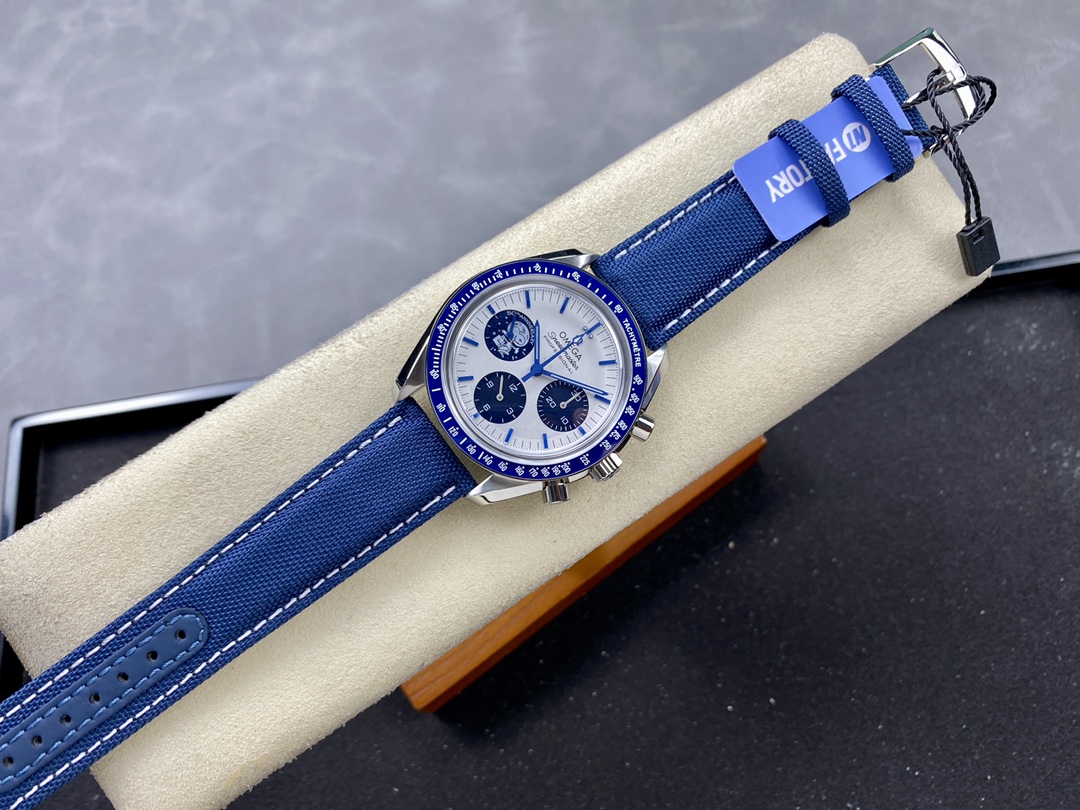 Omega Speedmaster Anniversary Series Silver Snoopy Award” 50th Anniversary 42mm Steel on Coated Nylon Fabric Strap Exact 1:1 Super Clone 3861 Swiss Movement Replica Watch