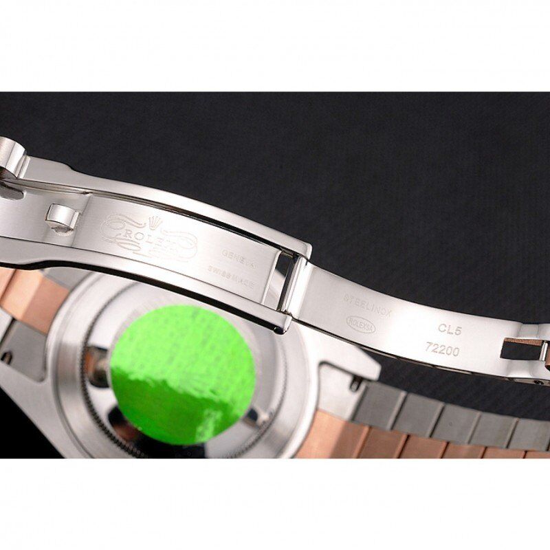 BackPolished stainless steel snap-in back with Rolex green authenticity sticker