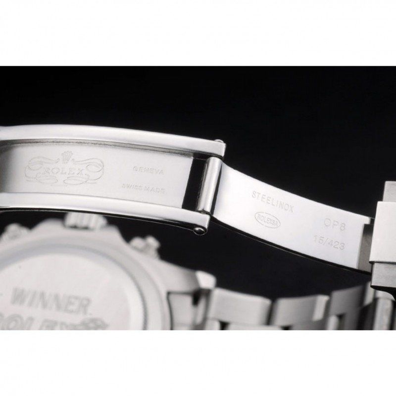 | Crown | Polished stainless steel cutwork crown with Rolex logo and a push button crown on either side of it |