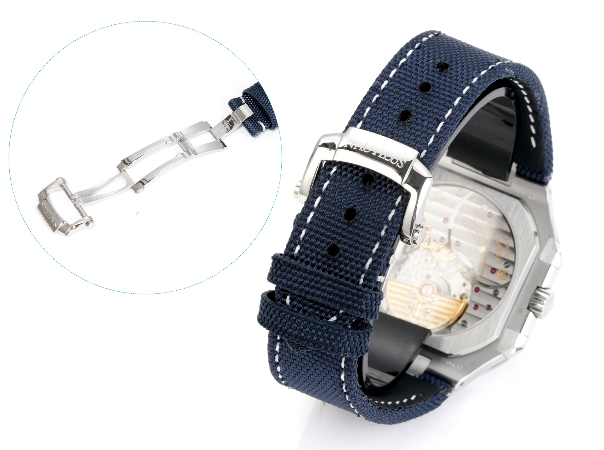- Bracelet Type : Fabric Pattern, Navy Blue, Platinum Cubitus fold-over clasp(Accurate Size of Genuine Watch)